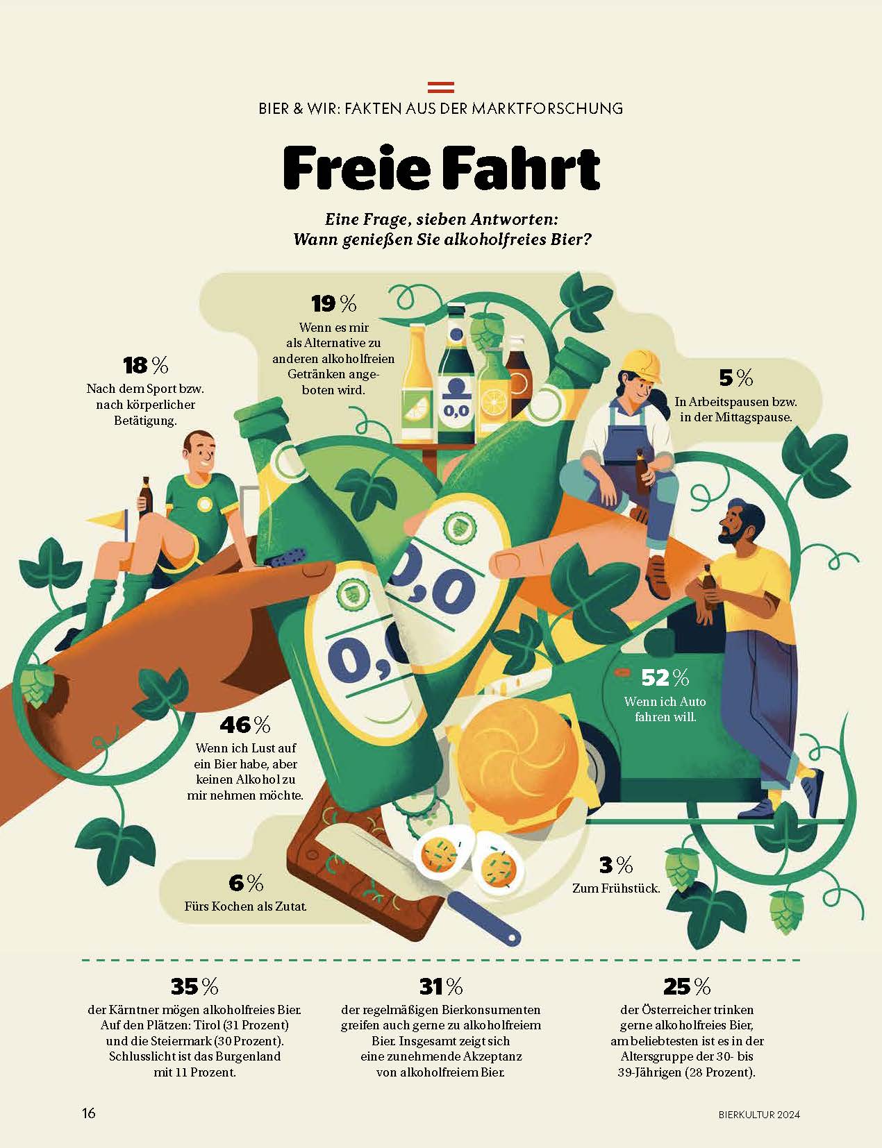 Die repräsentative Studie zum Bierkulturbericht belegt: 2024 gaben schon 25 Prozent an, alkoholfreies Bier sehr gern oder eher gern zu trinken – 2017 waren dies noch 17 Prozent. Kein Wunder, denn Geschmack, Qualität, Trinkbarkeit überzeugen immer mehr.